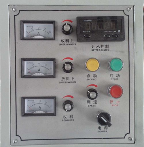 該機適用于窄幅條貼合,具有自動計米設定長度、自動停車、放卷、收卷張力采用磁粉離合制動控制,因此具有貼合精度高、貼合速度快、操作簡單。