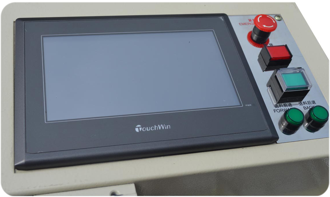 本機采用人機界面+PLC控制系統配合氣動推出裝置,可做多刀半斷一刀全斷的特殊裁切,切片長度可設置5種不同的尺寸,還可以設定不同的裁切數量及循環次數,提高裁切效率、精度高、損耗少、操作簡單。